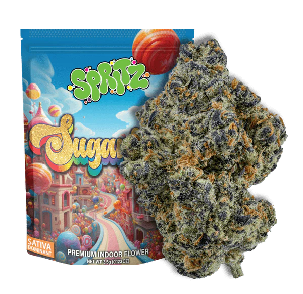 Spritz Sugarland 3.5g Flower is a sweet hybrid that delivers uplifting euphoria with every hit. Bursting with fruity, candy-like flavor and a joyful aroma, Sugarland is perfect for boosting mood and brightening your day.